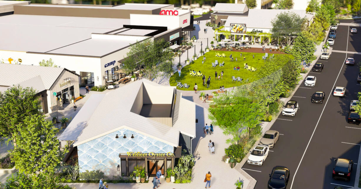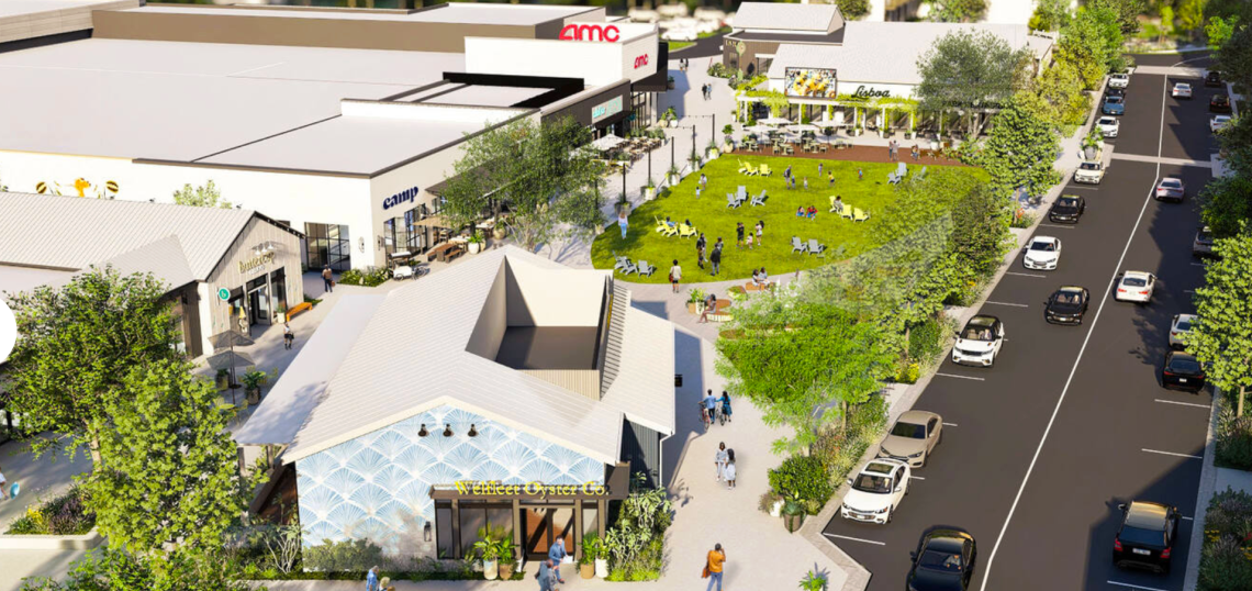 How the existing AMC theater building will relate to new shops and open-air social spaces at Lulah Hills. Edens/Lulah Hills