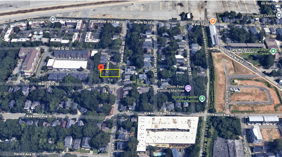 The 109 Chester Ave. property's context in relation to the Beltline, Wylie Street, and other landmarks. Google Maps