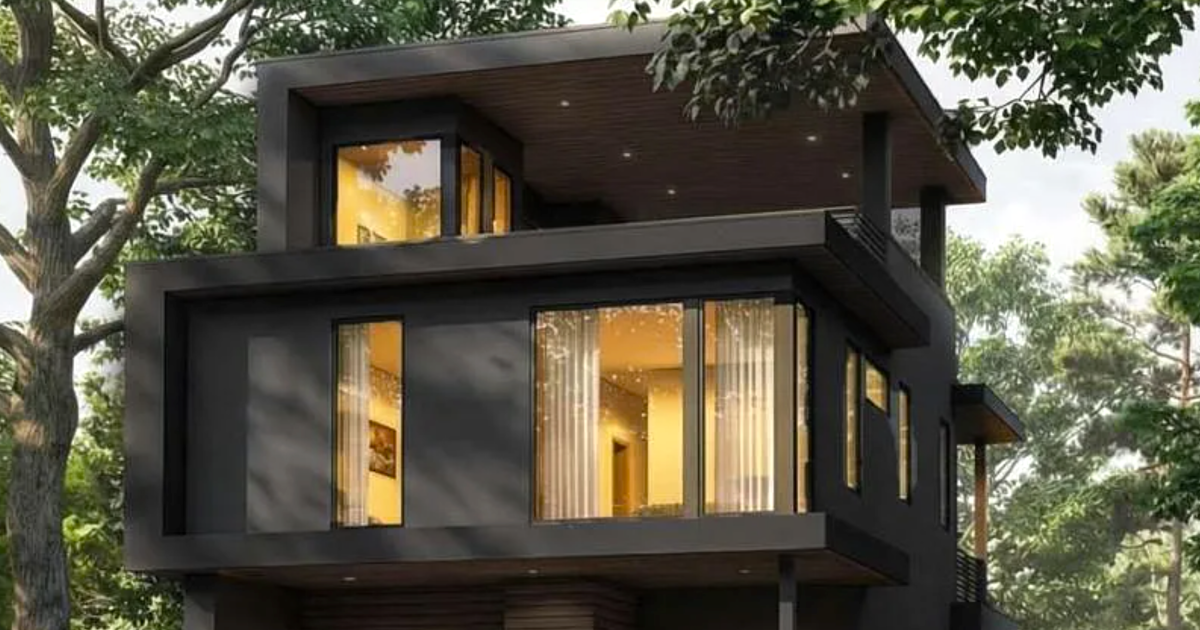 Plans call for more than 600 square feet of outdoor living spaces and covered porches (four total), including a rooftop hangout with a wet bar that’s marketed as having treetop vibes.