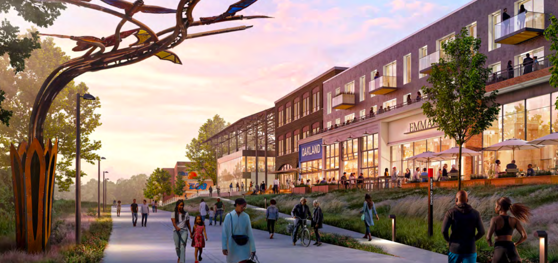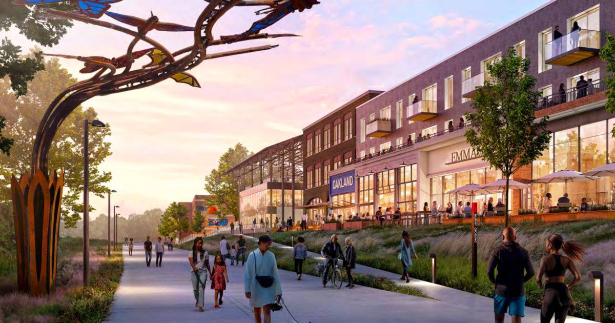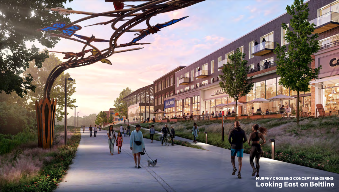 The Beltline’s development team, alongside frequent collaborators Perkins&Will architects, unveiled renderings Thursday that depict Murphy Crossing sprung to life with a relatively dense mix of buildings in a section of Oakland City where hundreds of unrelated homes are under construction now.