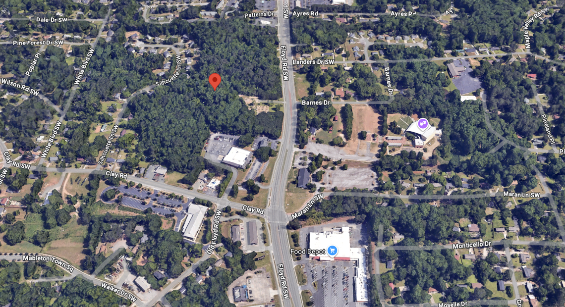 Mill Grove Vista's site at 5178 Floyd Road, with Mable House Barnes Amphitheatre shown across the street at right. Google Maps