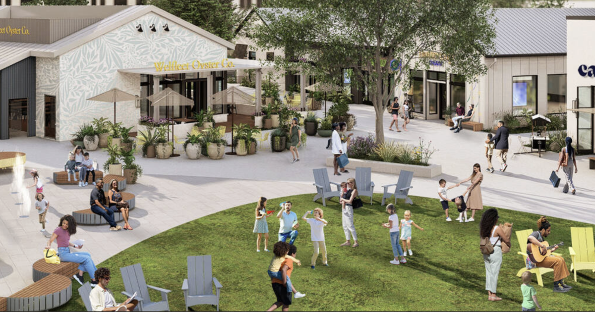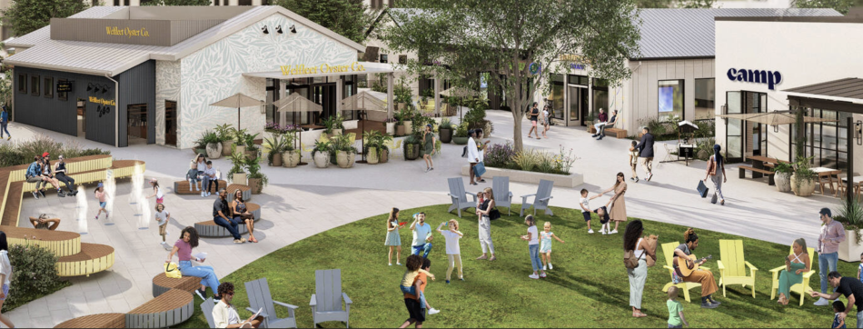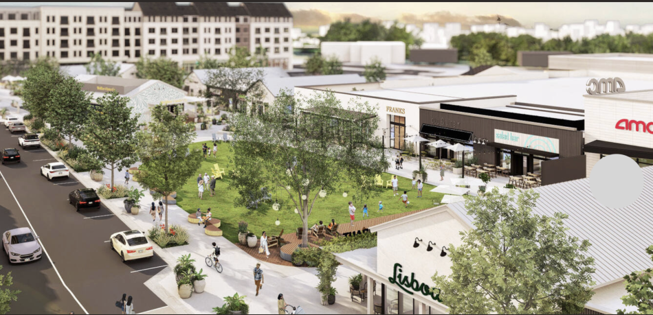 How the existing AMC theater building will relate to new shops and open-air social spaces at Lulah Hills. Edens/Lulah Hills