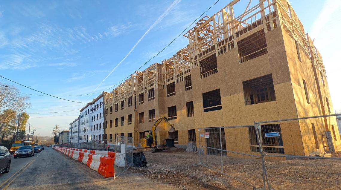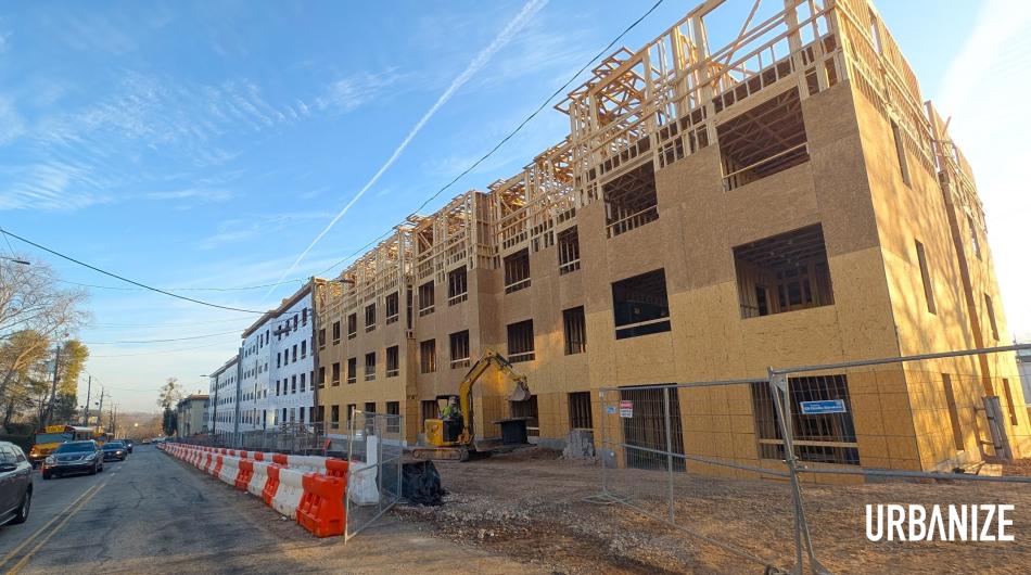 Construction progress this week on 187-unit City Lights North Block, a few blocks west of Ponce City Market. Josh Green/Urbanize Atlanta