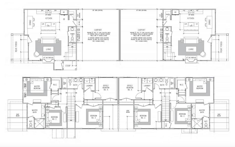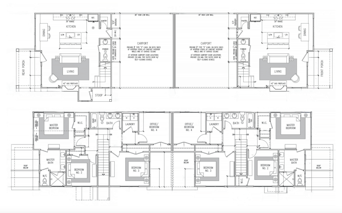 Example of two-story floorplans in the works for a Row 900 duplex unit. Courtesy of WilliamMarkDesigns
