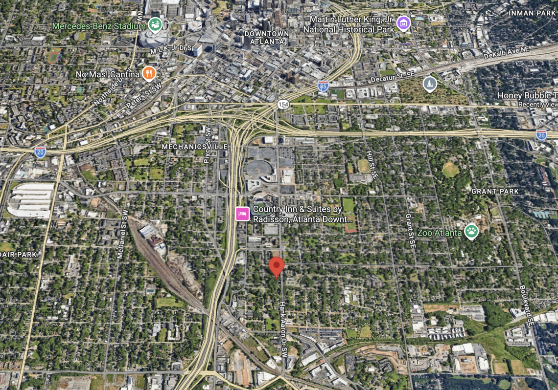 The project's Hank Aaron Drive location between Center Parc Stadium and the Atlanta Beltline corridor. Google Maps