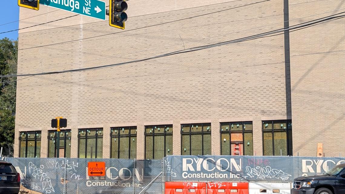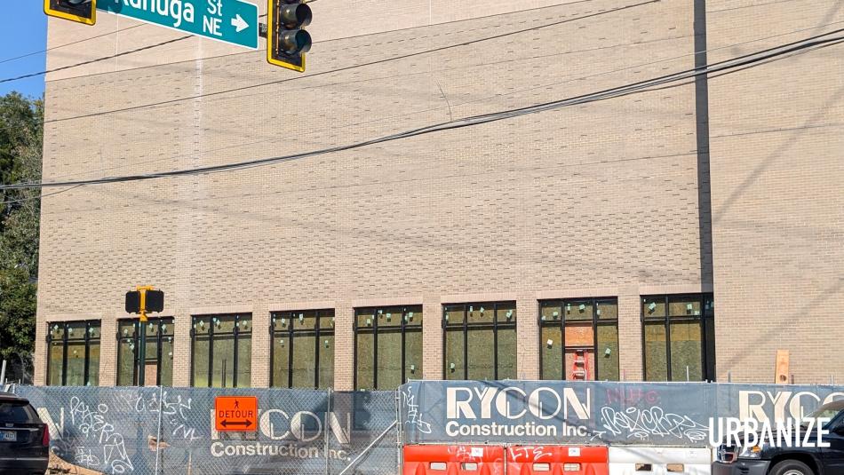 Blank walls continue on the facility's northern facade, along Cooledge Avenue. Josh Green/Urbanize Atlanta
