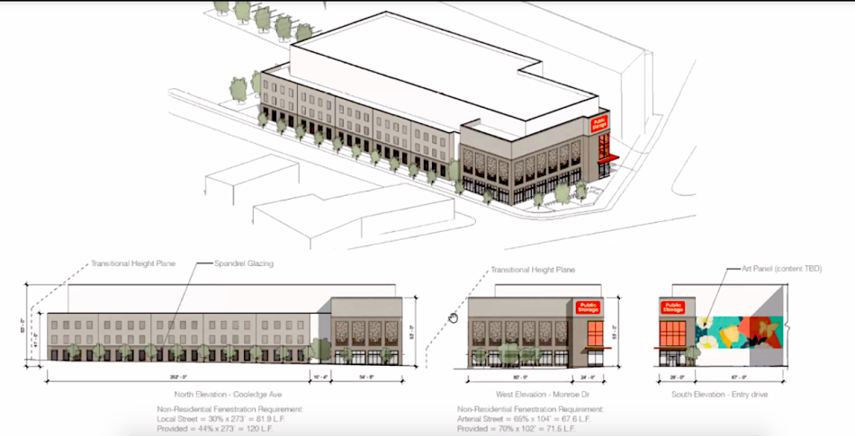 Renderings vs. Reality: How the Monroe Drive facility was projected to look, according to renderings submitted to Beltline development arbiters in 2023. Public Storage/Atlanta Beltline DRC