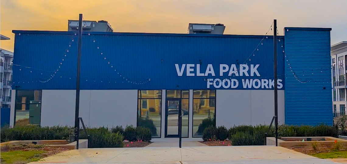 Vela Park Food Works is finishing construction now as a centralized retail facet at the nearly 12-acre rental complex that project leaders have said will feature six different, chef-driven concepts, alongside craft cocktails and roomy outdoor dining.
