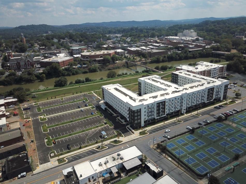The E-shaped project took shape next to a new hotel, the Courtyard by Marriott Rome Riverwalk, that was considered the first phase of an assemblage of properties for development the city’s been putting together for years, in hopes of better activating the riverfront. Another goal is to contribute to the vibrancy of Rome’s Historic Broad Street on the other side of the river.