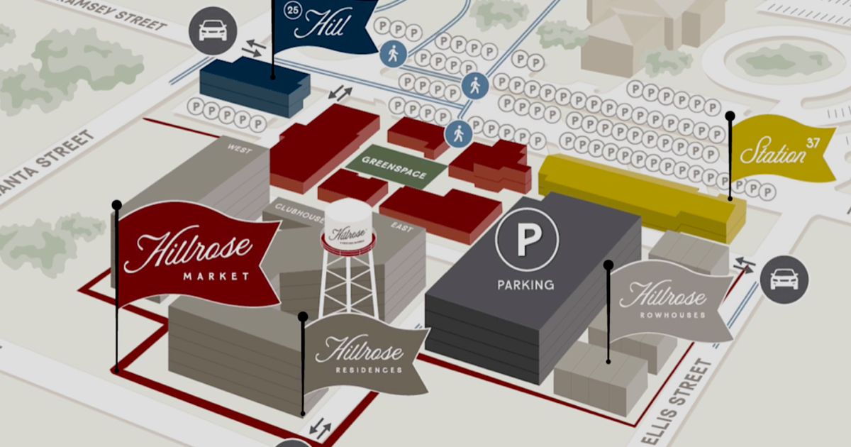Hillrose Market’s residential component will include 16 upscale, brownstone-style townhomes and what’s described as 143 “luxury rental flats with resort-style amenities.”