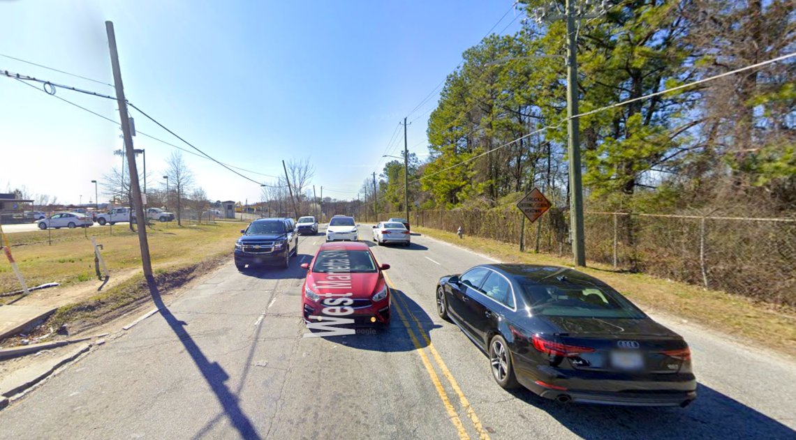 Just off the Beltline, headed toward main park entrances, the West Marietta Street corridor looks like this. Google Maps
