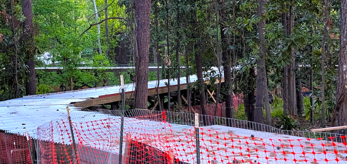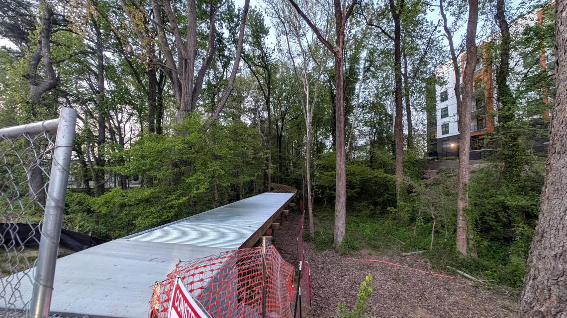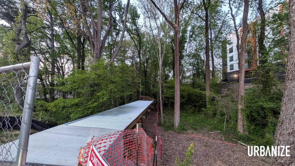 As is visible along Chattahoochee Avenue, immediately west of mixed-use warehouse district The Works, the Silver Comet Connector Segment 3 project is bringing an elevated trail through the woods with a system of boardwalks over Woodall Creek right now.
