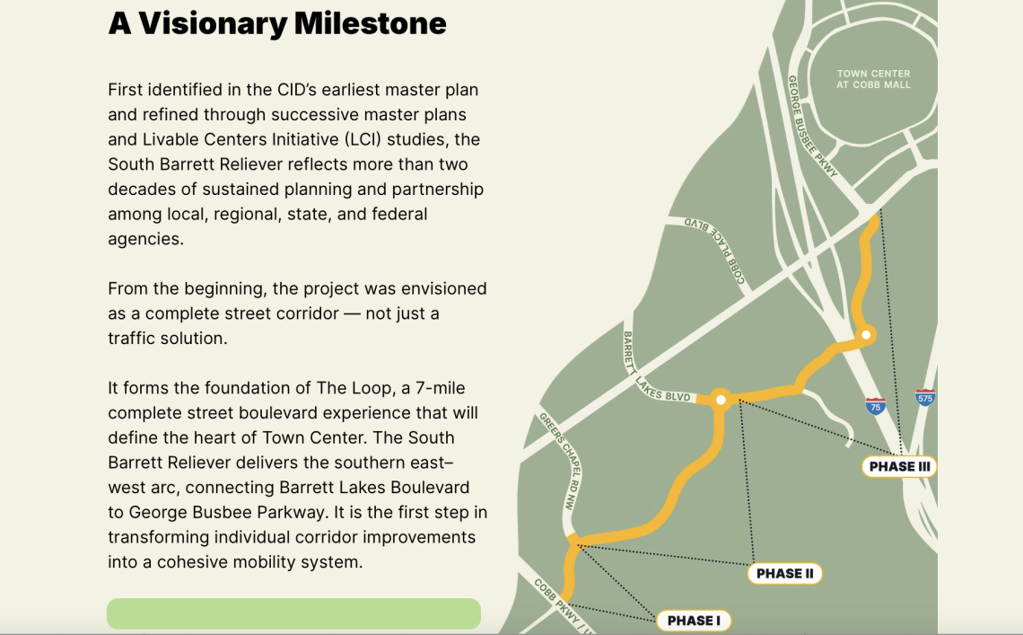 Now finished, the “transformative” South Barrett Reliever was designed to improve east-west connectivity and spur economic growth in Cobb County near Town Center at Cobb mall and the I-75/I-575 split, according to project officials.