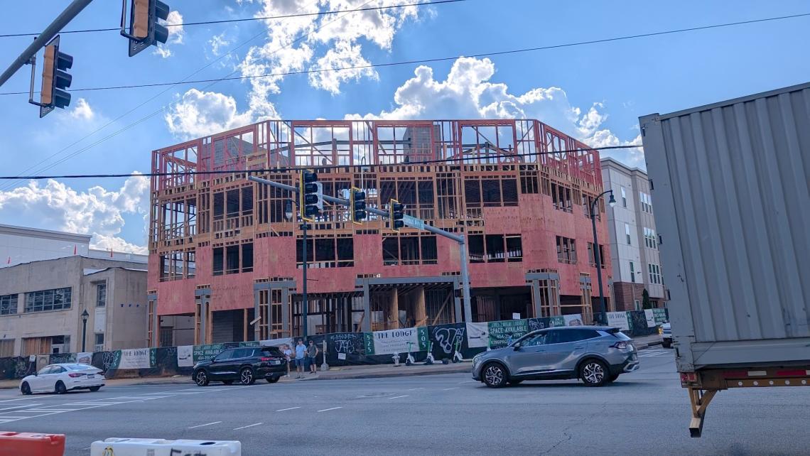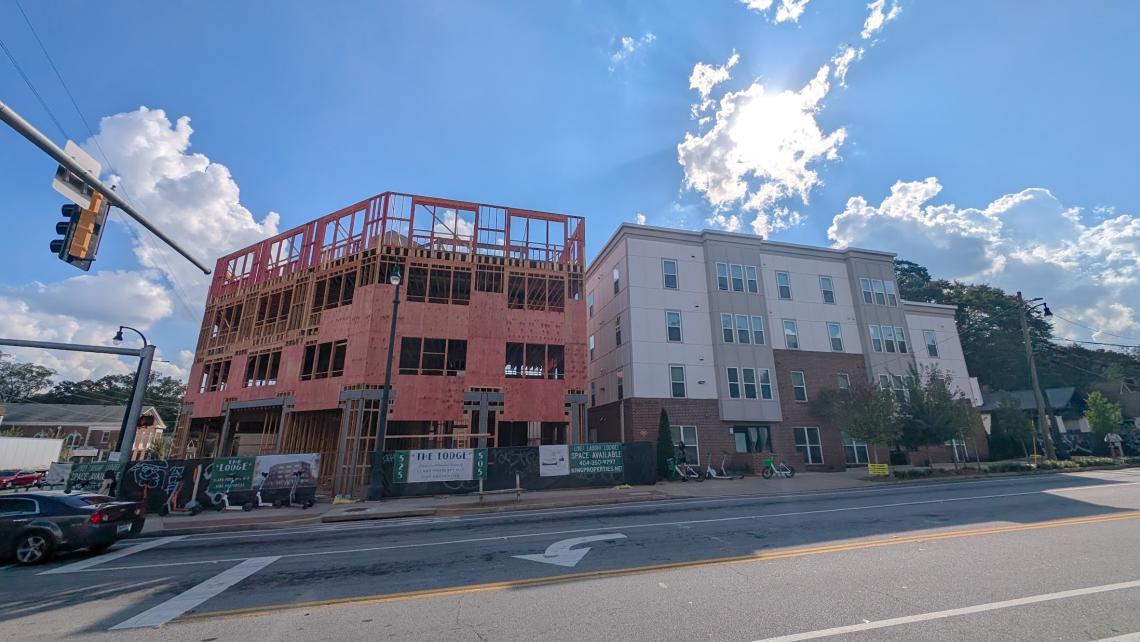 The corner building promises to serve as a unique entry point to Ormewood Park, with designs that echo architecture of a century ago. Despite appearances, it’s not quite topped out.