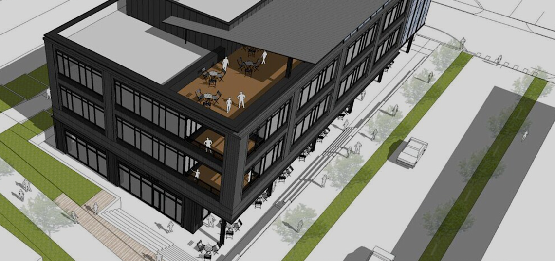 Plans indicate the 135,000-square-foot building will stand five stories, with a rooftop amenity area. It’s listed as a “partial build-out” for potential tenants, with three to 10-year leases going for $48 per square foot, per year.