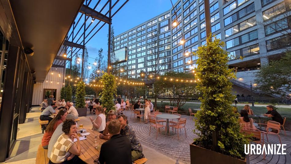 Local brewery, distillery, and restaurant concept Three Taverns Ponce Brew Terminal features a front-row seat to the Atlanta Beltline and the first food-and-beverage tenant for a large retail space completed more than a decade ago.
