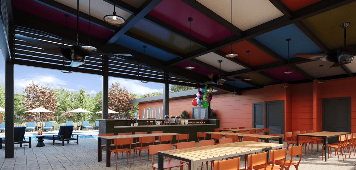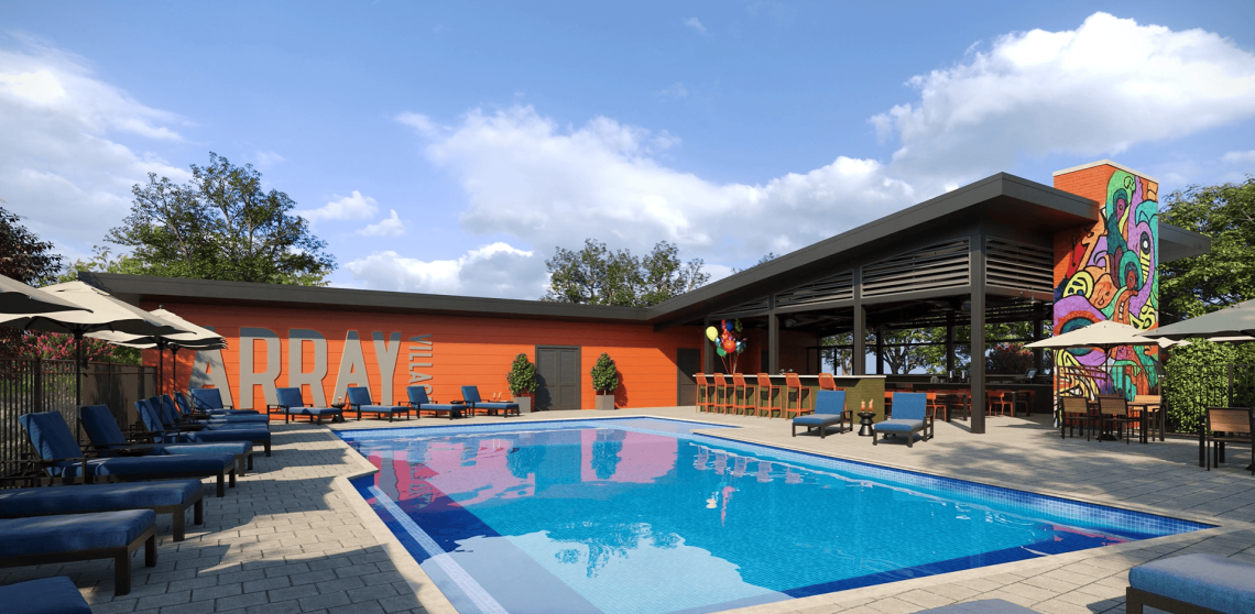 Rendering depicting communal pool and other perks planned for the Array townhome project. McKinley Homes