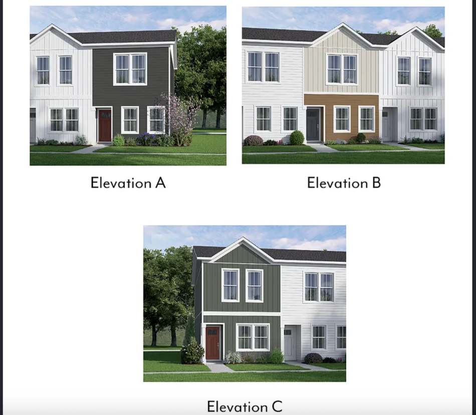 That’ll get a three-story option with three bedrooms and two and ½ bathrooms in 1,382 square feet, with a two-car garage.
