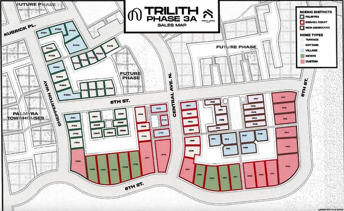How Cottages offerings are slotted in with larger home options at Trilith's residential phase 3A. Courtesy of Trilith