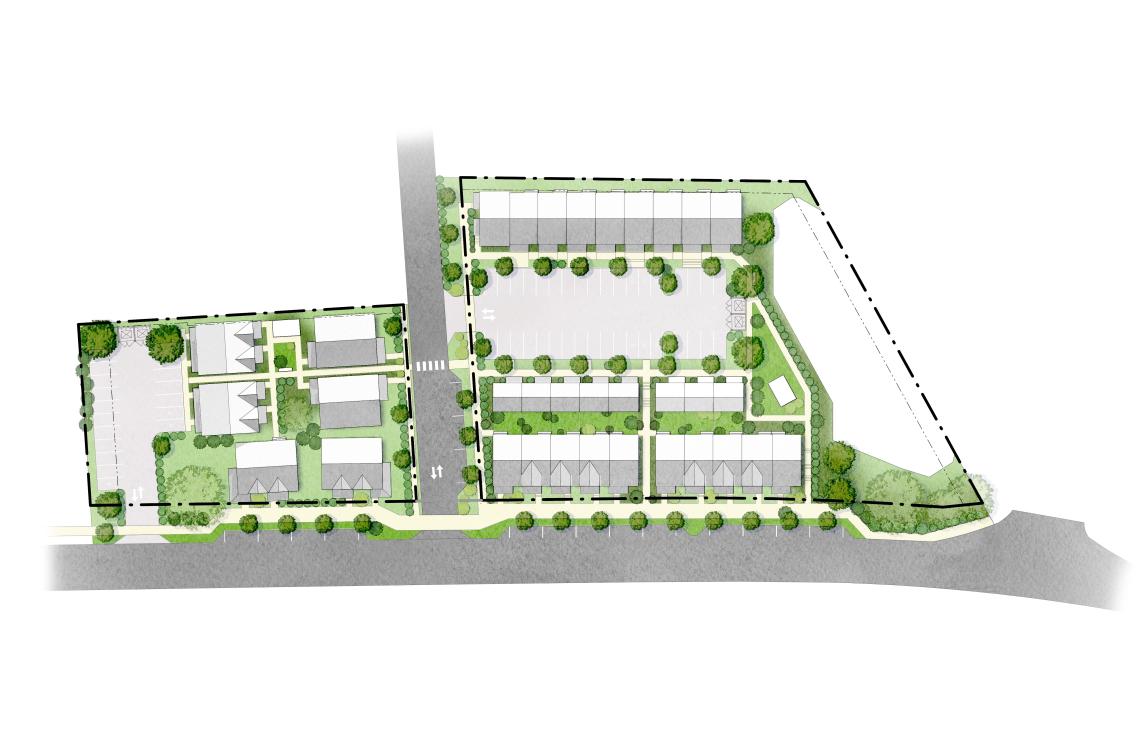 Full site plan for the 40-unit Trust at East Lake. The section under construction now is at left. Courtesy of Kronberg Urbanists + Architects