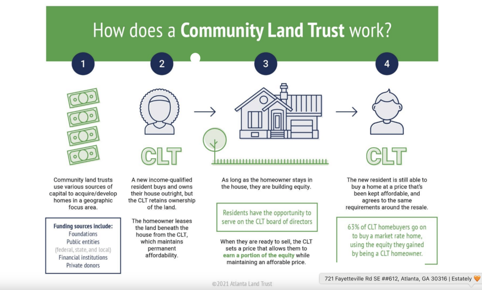 The East Lake townhomes are one of several projects Atlanta Land Trust is moving forward as a means of mitigating gentrification as housing prices climb in the city. With affordable housing ventures in Oakland City, Grove Park, Pittsburgh, and along the Beltline, Atlanta Land Trust hopes to create 300 residences that are both permanently affordable and energy-efficient by the end of 2027, officials have said.