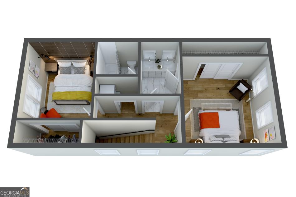 Trust at East Lake units, marketed at townhomes, count two bedrooms and one and ½ bathrooms across two stories.
