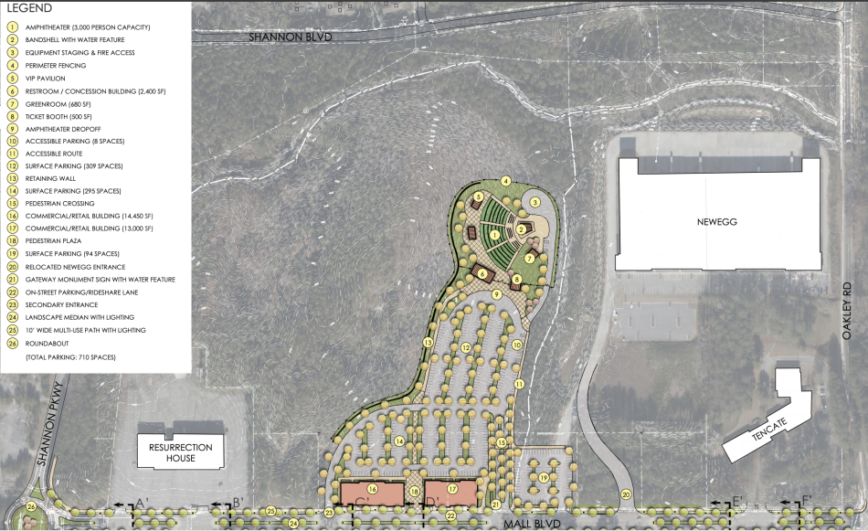 Infrastructure near the amphitheater includes more than 700 surface parking spaces, according to site plans.