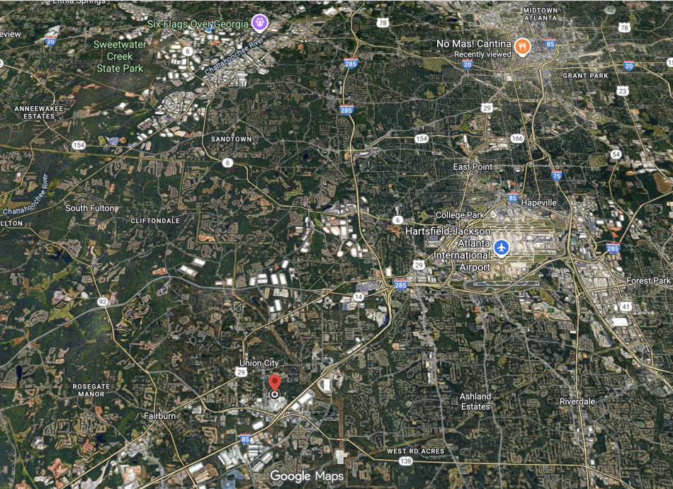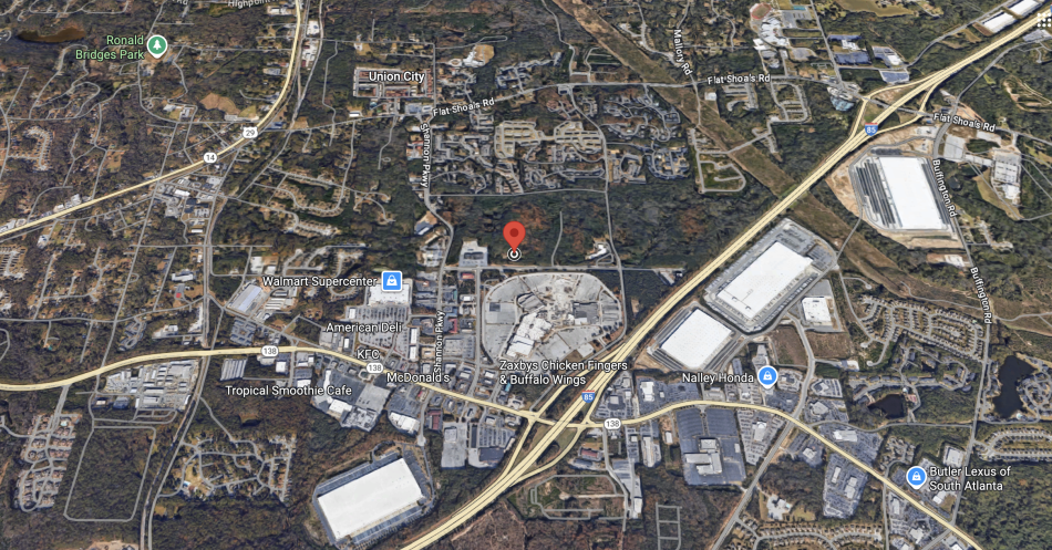 The Reimagine Park Project site (in red), just north of the former Union Station/Shannon Mall site and Interstate 85 in Union City. Google Maps