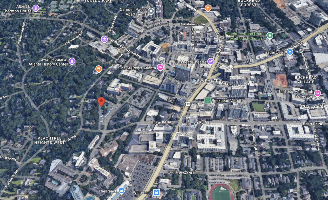 The Pharr Road project site location just west of Jamestown's Buckhead Village retail and dining hub.