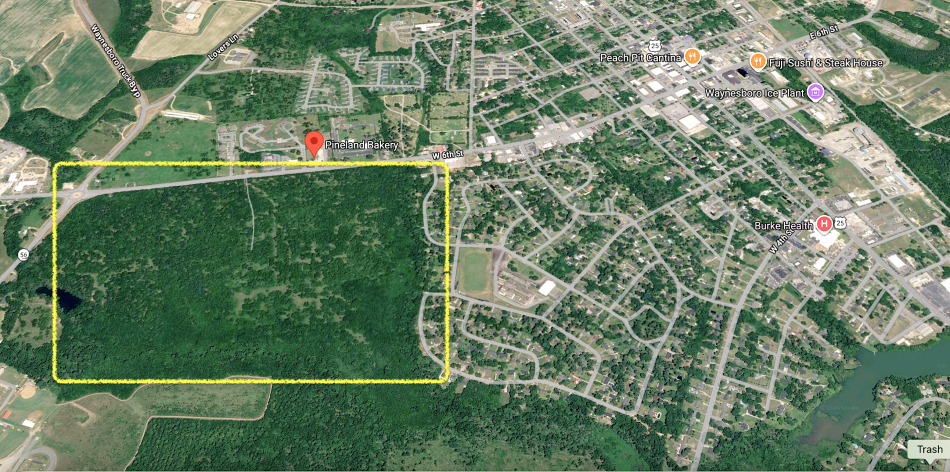 Today, Waynesboro is a town of roughly 6,000 residents about 30 miles south of Augusta, and two and ½ hours east of Atlanta. St. George Crossing’s site is conceivably within walking and biking distance of Waynesboro’s charming old downtown square area, situated about a mile away.