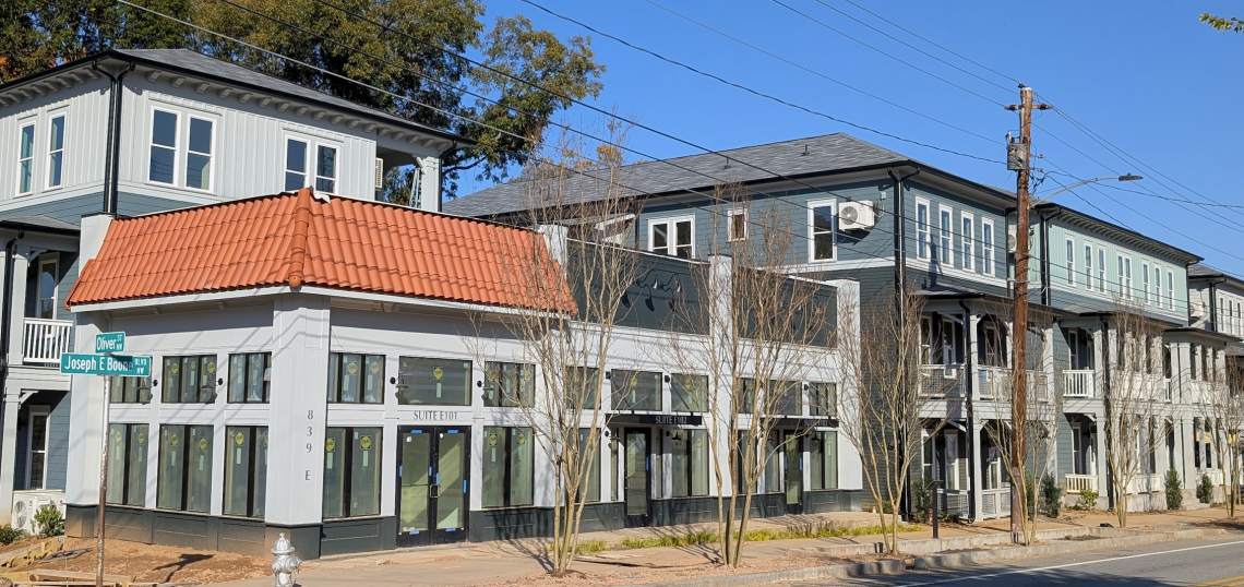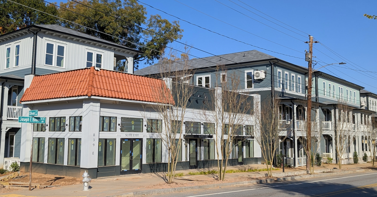 An English Avenue mixed-use development with unique, throwback aesthetics near two cornerstone parks is nearing completion this month, with a goal of injecting attainable housing and commercial activity into the historically disinvested Westside neighborhood.