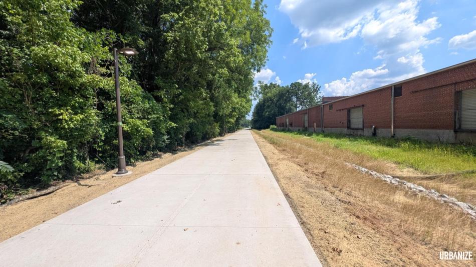 The Bankhead site owned by Allen Morris Company is at left, looking south, as seen along the Beltline's Westside Trail when it opened last summer. Josh Green/Urbanize Atlanta