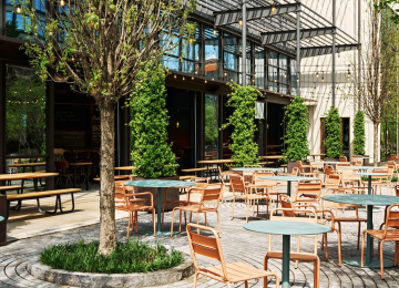 Brewery, kitchen, distillery Three Taverns Ponce Brew Terminal on tap at base of Signal House tower