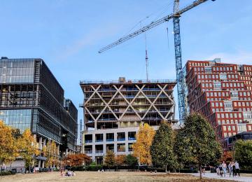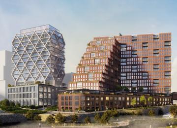 Latest building to ascend at New City project is 75-key lodge with diamond-patterned exterior