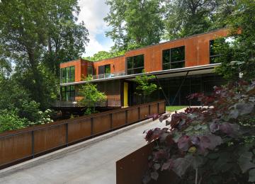 New construction featured on MA! Architecture Tour includes private bridge, corten steel siding