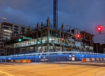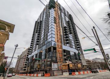 Downtown's latest student housing tower has claimed a parking lot, low-rise offices
